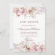 A soft and feminine design featuring watercolor pink blossoms and delicate greenery, perfect for celebrating the mom-to-be in timeless style. This floral piece combines romance and modern simplicity, ideal for spring or garden-inspired baby showers.