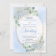 Make your special day unforgettable with this elegant watercolor wedding invitation, thoughtfully designed to shine with Zazzle’s premium print quality. Featuring soft pastel blue hydrangeas, delicate eucalyptus and greenery foliage, and a refined gold glitter oval frame, this invitation blends timeless romance with modern sophistication.