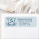 Pastel Blue Löv och Blommigt Monogram Vapensköld A Returadress Etikett