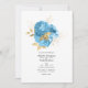 Bröllopbjudan till blommigt med vattenfärg i accenter från baby blue och faux glitter guld designad för att snabbt och enkelt anpassas till dina händelsespecifikationer.