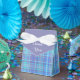 Anpassningsbar-/pastellblå pläteringsruta med "tack"-text (alternativ för att ta bort text eller anpassa med din egen).