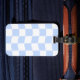 This luggage tag features a pastel blue and white checkerboard design, with a retro wavy distortion. You can edit the colors in the Zazzle design tool. Makes a great birthday gift for your teen daughter. ••• For more groovy patterns, visit my store Zazzle.com/JessicaAmberArtist ••• For custom orders, message me on Zazzle