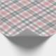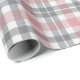 This elegant and contemporary gift wrapping paper showcases a plaid pattern in shades of pastel blush pink, gray, and white, creating a classy and classy simple atmosphere. The paper is perfect for wrapping any gifts in a classic colonial style and complements a charming country cottage or farmhouse theme.