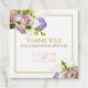 Tack till gästerna i bröllop eller till ledamöterna i brudens sida med dessa vackra märkre till förmån eller gåva. Med guld och rosa text på vit bakgrund med guld-förskjutningsrutor i gräns och en vacker vår-pastellbukett av blommor inklusive rosa ros, vit calla lilies & orchids samt lätt lila eller lavender hydrangea. Texten är helt anpassade och lyder: Tack för att fira med oss och parets namn.