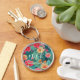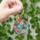 Pastel Butterkoppar Oriental Embroidery Blommigt A Rund Silverfärgad Nyckelring