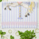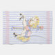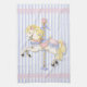 Cute Cirus carousel pony med flytande mane och svan. Pastel rosa och Lavender blåa blommor och rosa hjärtaccenter. Söt pastellblå rand-bakgrund.