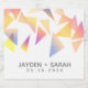 Lägg till ditt personliga varumärke till din speciella dag med de här högstämda vin-etiketterna, som har triangeln konetti med flera färgader och som har en vit bakgrund. Lägg till namn och bröllop-datum för nya lyweds. Design © W.H. Sim. Se mer på zazzle.com/expressionsoccasions