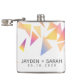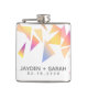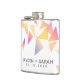 Minneshögtid din speciella dag med den här bröllop-kolven, som har triangeln konetti med flera färgader som ställs in på vit bakgrund. Lägg till namn och bröllop-datum för nya lyweds. Gästerna har också en underbar fest! Design © W.H. Sim. Se mer på zazzle.com/expressionsoccasions