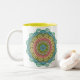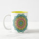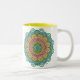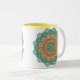 en pastellfärgad mandala i rosa, blått, grönt och gult, med blommigt inslag