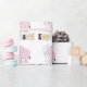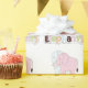 Pappra med en mönster i sidled av rosa och blå elefanter med ord "elefanter" tryckt under. Perfekt för att slå in en babyduschgåva!