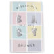 Vår "Pastel Färg Block Baby Shower"-samling innehåller ljusa pastel färg-block i kombination med dekorativa foliebokstäver "baby" i två folier som du väljer, silver och guld, parade med ett elegant serif-teckensnitt för all information. Sök efter fler objekt från den här samlingen i vår butik.