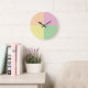 Pastel färger, modern konsthändelse, färg-blockväggklocka. Rosa, ljusgrön nyckel-kalk, citrongult och peachy orange fläkt över den här muterade regnbågspaletten färg för att uppliva ditt lekrum, daghem eller sovrum!
