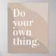 Denna moderna minimalistisk poster med den inspirerande frasen "Gör ditt eget sak." i ett elegant serif-teckensnitt. Bakgrunden visar en abstrakt i snyggten med vågformad i beige, beige och mjuka bruna nyanser i lugnande neutralt som skapar ett varmt och lugnande estetiskt estetiskt. Den här väggkonsten är perfekt för hemmakontor, rum, sovrum eller kreativ, vilket ger en viss motivation och contemporary.