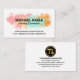 Ett vitt hölje har en vacker design med pastellfärgstänk. Ni är den experten i färg-kombinationer. Färgstänktaren har ditt prestigefyllda namn och din jobbtitel med kontaktinformationen nära basen. En guld-logotyp som du kan använda är överst. Detta följs av företaget namn, dess kontaktuppgifter och en sloganbeskrivning. Ett underbart kort för hemmålare, byggverksamhet och byggnad. #målar#målare #homerepair #handyman #målingentreprenör #housepainter #masonry #brickwall #homerepairservice #renovationerreparation #byggnad #entreprenör #bygder #renovation #remodeling #zazzlemade