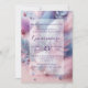 Den här eleganten Quinceañera-inbjudan har en drömmande och visuell design. Bakgrunden visar mjuka pastellfjädrar i skuggor av rosa, blått och lila, skapande en känslig och förtjusande atmosfär. Med accenter och pärlor från glitter får du en gnutta glamor, som fångar ljuset och förbättrar det estetiska helheten. I mitten av inbjudan kan du anpassa fullt med hjälp av ett tydligt rektangulärt område. Du kan anpassa texten med information om t.ex. händelsedatum, tid, plats och OSA. Denna utformning är en perfekt för att fira denna viktiga milstolpe i en ung kvinnas liv.
