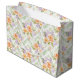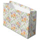 Make a beautiful statement with this large pastel watercolor floral gift bag featuring peach roses, lavender blooms, and soft greenery set against a sage green chevron background.