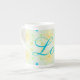 Pastellernas gult och blått och en droppe turkos. Den mycket ljust grönt bakgrunden kan ändras till valfritt färg. En snyggt china mugg med ett modernt blomstrande tryck. Texten i kärlek kan vara personlig till namn, eller så går det inte att ta bort texten.