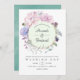 Chic pastel stil rosa, lila och myntinbjudan till blommigt med guld geometrisk ram.