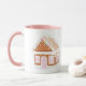 Torkbrödroppshus med snövit isbildning och pastellkandisering. Söt rosa fönster och en bågdörr på kanelkrydda bruna ram.