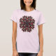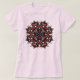 Pastel Goth Women's T i rosa och grönt som skildrar en skräckcirkus stil kaleidoskopisk illustration med öga och horn.