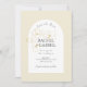 Dessa moderna, minimalistiska vykort för pastellpastellisering gult bröllop spara datum har en boho arch, en känslig imitation av guld blommigt inslag och en samtida uppsättning av typsnitt i jet svart. Blomdetaljen upprepas längst bak bredvid den valfria texten. Den här utformningen är contemporary och chic. Perfekt för snyggten och eleganten.