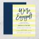 Inbjudan till Förlovningsfest av snyggt med orden "Vi är engagerade" i trendigets blå penselskript mot bakgrund av pastellgult och vitt rand. Kortet har en blå färg baksida. Kolla in andra matchande objekt här https://www.zazzle.com/collections/119250194970828530?rf=238364477188679314 Anpassa den genom att ersätta platshållartexten. Om du vill ha fler alternativ som att ändra teckensnittet och det är storlekt/färg eller mellanrummet mellan brev klickar du på knappen "Anpassa". *Observera att Zazzle Watermark som visas i zoomförhandsvisningen INTE visas på den färdiga tryckta produkten. © Rosewood and Citrus