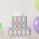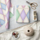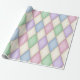 Denna pappra förpackning har en elegant Harlequin mönster på pastellblått, lila, grönt, rosa och krämdiamanter som rutor av nedfläckad glas eller lappar av en jesterklädsel. Perfekt för babyduschar, födelsedagar, helgdagar, hantverk och dekoration.