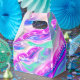 A dreamy pastel holographic swirl featuring soft rainbow gradients and fluid wave