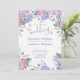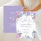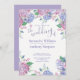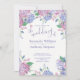 Pastel Hydrangeas Blommigt Bröllopsinbjudan designad i skuggor av mjuk lila, blått och rosa, på vit bakgrund. I texten på framsidan finns: Namn, datum, tid, plats och Adress. Den omvända texten innehåller: din plats och information för mottagning, på en mjuk bakgrund med vit lila och Hydrangeas Bouquet. Om du vill anpassa den här inbjudan infogar du bara dina uppgifter i vår enkla mall och ersätter exempeltexten. Se till att du ser hela Pastel Hydrangeas Bröllop Collection för matchande kort och tillbehör.