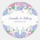Lägg till den här matchande klassiska rond-etiketten till dina tillbehör för Bröllop. Designad för att matcha våra Pastel Hydrangeas - Bröllbjudan, detta klistermärke är designat med buketter av vackra Hydrangeas i skuggor av lavender, blått och rosa, på vit bakgrund. Dessa buketter omger Bride & Grooms första Namn och Bröllop Date i matchande lavender-text. Om du vill anpassa dig användor du bara vår lättförståeliga mall för att infoga namn och datum. Njut.