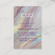 Elevate your branding with this luxurious holographic marble design, featuring fluid iridescent textures that blend soft pastels with shimmering gold accents. The luminous surface creates a subtle color-shifting effect, giving the design a modern, high-end feel that instantly stands out. Paired with clean, bold typography, this layout is ideal for professionals who want a polished yet eye-catching presence—perfect for beauty brands, creatives, and entrepreneurs looking to leave a memorable impression.