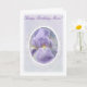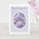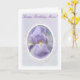 En Kreativ Card-design som innehåller en iris för pastellisering av lila i ett lila och vitt färg-tema i detta ett-av-ett-liknande"Grattis på födelsedagen-kort". Den här eleganten och den färgstarka designen gör att perfekten kan välja att säga "Grattis på födelsedagen Mamma!" och levereras med en matchande inredingsdesign med helt anpassade textbrev till kostym med ditt eget speciella tillfälle eller hälsning.