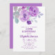 Hona en speciell kvinna med denna elegant och feminin Födelsedagsfest inbjudan. Den här eleganten har vattenfärgsblommor i lila ro med mjuka grått-löv. Varje text är anpassade för dina behov.