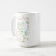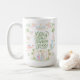 This mug design has a pastel color palette and features a nativity scene with baby Jesus in a manger. In the center in hand drawn text that says "Glory to the Newborn King." You can add your name to the back.