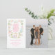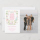 This Christmas card features a nativity image of baby Jesus sleeping in a manger with Mary and Joseph in the center surrounded by a the wise men and two angels. The top has a greeting that says "Hark the Harold Angels Sing." You can personalize with names and a year.