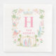 This Christmas napkin design features a nativity image of baby Jesus sleeping in a manger with Mary and Joseph in the center surrounded by a the wise men and two angels. In the center you can add your initial and a name.