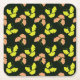 Pastel-Neon Ginko Leaves on Black Background Underlägg Papper Kvadrat