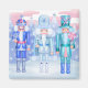 Tre jubilanta nötskackor, som bär fantastiska gåvor från vintersäsongen, gör regal attire mitt i en frost-kyssad skog av pastel-färgad. Originalillustration av konstnären Noël Snö.