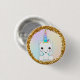 En söt enmajsknapp med en söt liten baby-enhörn med regnbåge och färgad och liten, vit vingar. Denna lilla kornigstapp skulle ge en underbar gåva till en enmajskål älskare, eller till och med göra underbara party favors eller dekorationer vid en babydusch för enmajskorn, födelsedagsfesten firande eller den första födelsedagsfesten för enmajskorn.