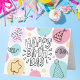 Fira i stil med det här leksakskortet med en modern doodlingdesign i mjuk pastel färg. Den glada illustrationen kombinerar geometriska cirklar för mint, rosa och gult med handritade inslag i party som konfetti, stjärnor och hattar i party. Den vita typografin gör att "Grattis på födelsedagen" hamnar mot den vita bakgrunden. Perfekt för födelsedagar i alla åldrar strejkor detta kort perfekten mellan roligt och sofistikerad med contemporary och söt färg palett.