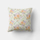 Add a touch of soft elegance to any space with this pastel watercolor floral throw pillow featuring peach roses, lavender blossoms, and a sage green chevron background.