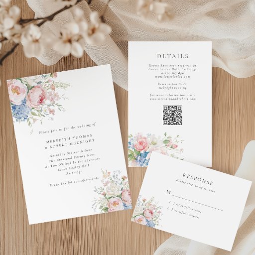 Pink & Blue Pastel Flowers Spring WeddingDesignad av Modupe Yalley