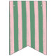 Elevate your party venue's decor with these charming Pastel Pink Bow and Tulip Floral Bunting Flags. A quintessential element for achieving a flawless coquette theme, this custom party banner drapes your space in romantic elegance. Each triangular flag showcases a meticulously designed repeating pattern featuring a textured backdrop of sage green and soft pink stripes. Overlaying this classic pattern are beautiful white scalloped lace doilies framing delicate vintage pink tulips tied with trailing satin bows, creating a visually cohesive and Instagram-ready backdrop for photographs and main tablescapes.