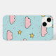 Whimsical and dreamy seamless pattern featuring soft pink clouds, yellow stars, and tiny pink dots on a baby blue sky background. This adorable cartoon-style design is perfect for kids’ products, nursery decor, baby shower items, gift wrap, and playful accessories. A charming and cheerful pattern that brings joy to any product surface.