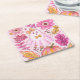 Pastel Pink Halloween Ghost with Flowers and Pumpk Underlägg Papper Kvadrat