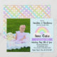 Grattis till din lilla födelsedag med den här vackra fotoinbjudan. Anpassa den här inbjudan till baby-fotot. Framsidan har en mjuk, pastellfärgad regnbåge med moln på en himlar blå bakgrund. Baksidan av inbjudan har en bra matchande pastellartad regnbåge gingham plaid mönster... Se vår Pastel Rainbow Birthday-samling för samordning av party-leveranser, behandlingar, presentfigursättningsalternativ med mera!