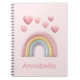 Pastel Rainbow and Hearts with Pink Custom Name Anteckningsbok