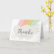 Ett modernt barn tack-kort med en pastellfärgad regnbåge och vita fluffiga moln med stort anpassningsbart tack och barnets namn. Insidan har en yta för ett anpassat meddelande eller så kan du ta bort det om du hellre vill skriva ett personligt tack för hand.