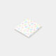 En magisk mönster av regnbåge, pastellkristaller och ädelstenar på en papper bakgrund med vattenfärg. Äggen för rosa, lila, blått och gult anges i vitt.