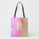 Få lite elegans och charm till dina vardagliga ärenden med den här unika väskan! Med ett foto av svan-fjädrar som har förbättrats med en pastelliserad regnbågseffekt gör snyggten påstående varhelst du går. På ena sidan visas din inledande personlig namn och monogram, medan den andra sidan framhäver den fasta ludddetaljen för ökad mångsidighet. Perfekt för shopping, skola eller avslappnader!